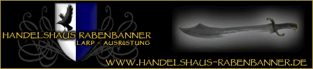 "Ausverkauf bei der Rüstkammer.com in Oer-Erkenschwick bis 31. July 2005 " Auf viele Artikel gibt es zusätzlich nochmals 10% Rabatt." Sucht ihr eine gut sitzende Rüstung oder vielleicht eine Schwertscheide? Dann seit ihr hier richtig aufgehoben! |